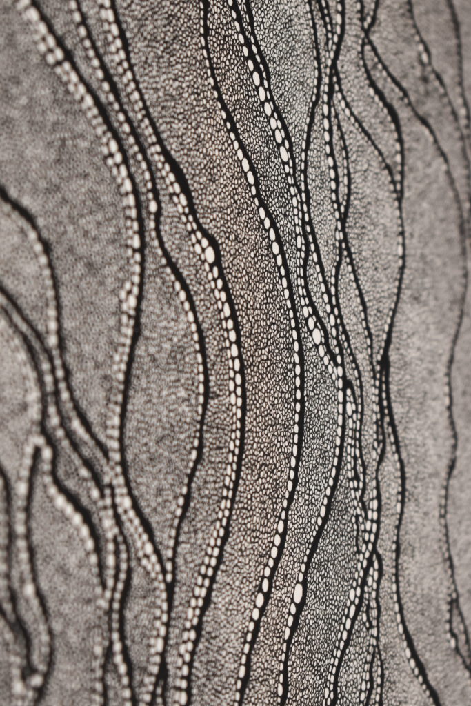 Elle explore les crevasses et les vides de l’existence, les restituant à travers les rythmes et les textures du fil.”