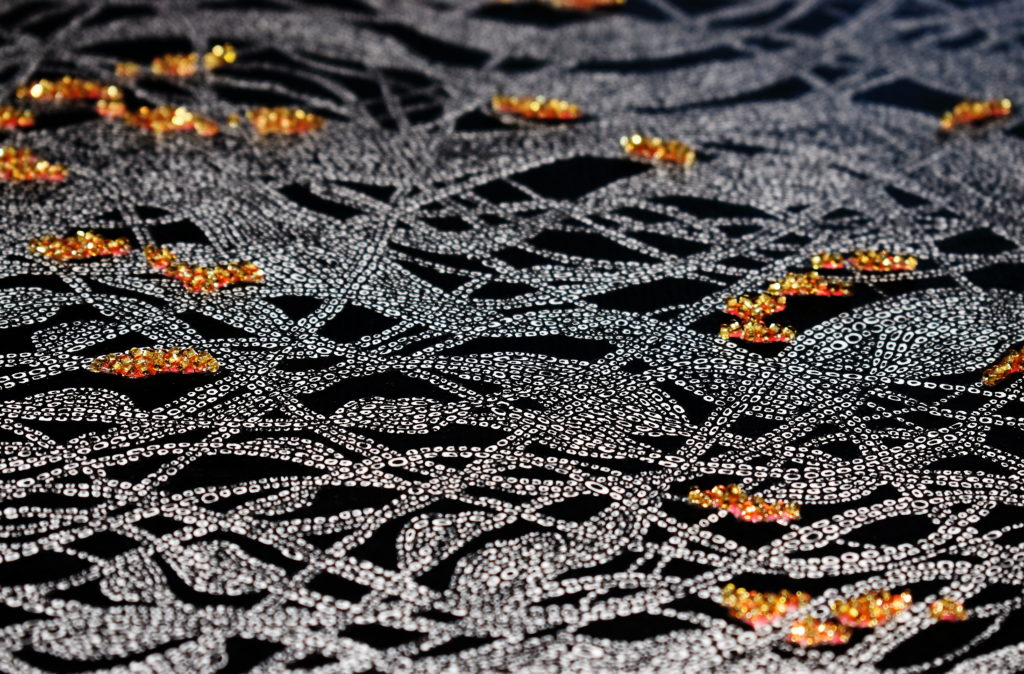 Ondines, 90 x 90 cm, aquarelle et broderie sur papier, détails