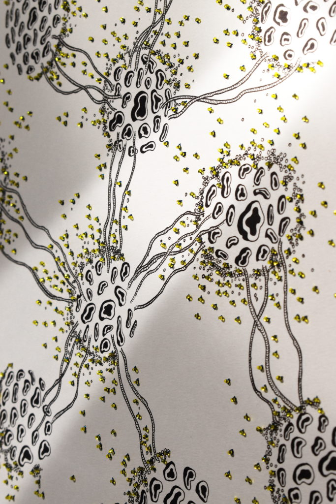 Naissances, 27,5 x 38 cm, 2025, feutre fin et broderie sur papier, détails