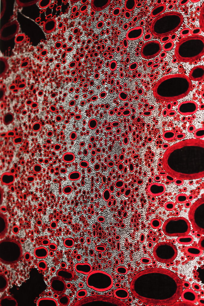 Lou : J’aimerais aborder les thème de la putréfaction et des cycles de vie, et poursuivre la réalisation de grandes tentures et sculptures à partir de mes dessins cellulaires. Je souhaiterais étudier les relations entre l’atome et le cosmos, entre l’infiniment petit et l’infiniment grand, grâce à la broderie.